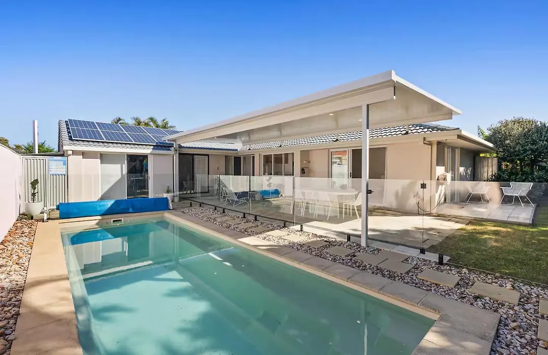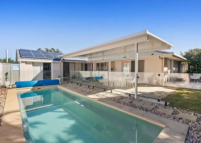 Tilbyder en privat pool, er Designer Beach House With Pool, Firepit And Kayaks placeret 10 minutters kørsel fra Alex Bluff Foreshore Park. Feriehus har en terrasse.